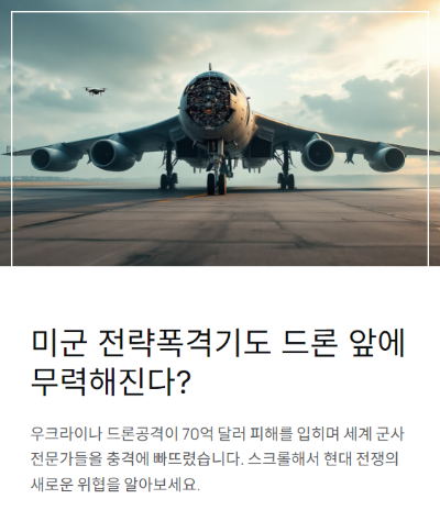 군사력의 상징이던 전략폭격기조차 이제는 드론 앞에 무력해질 수 있는 시대입니다.