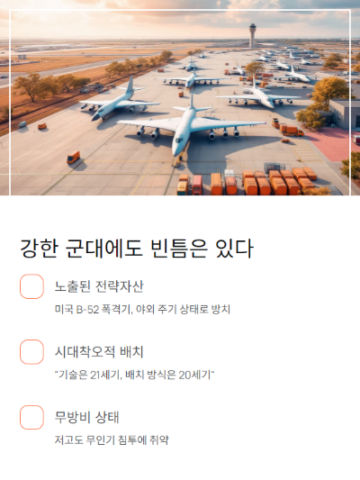 📍 비용 대비 효과 수천만 원짜리 전략자산을 수백만 원 이하 드론이 파괴할 수 있다면?