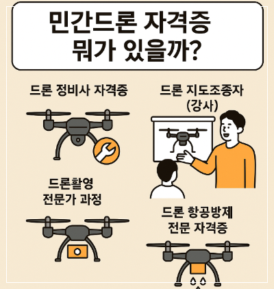 드론 산업이 확장되면서 생겨난 민간자격증은 생각보다 다양합니다.