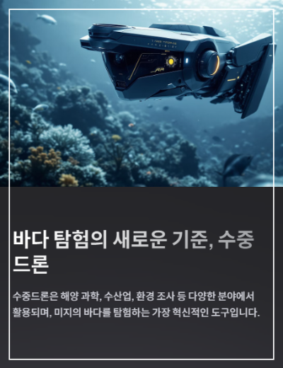 바다라는 미지의 공간을 탐사하고자 한다면, 수중드론은 가장 혁신적인 도구가 될 것입니다.