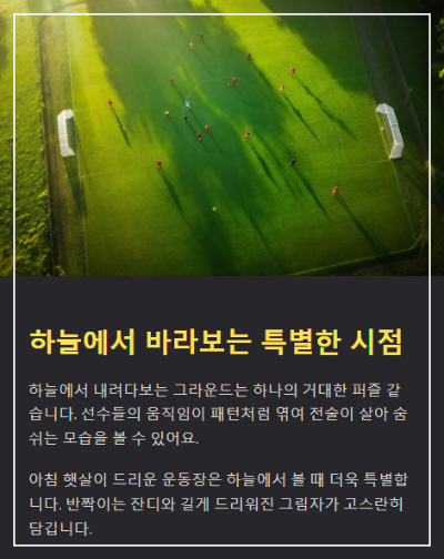 마치며: 하늘에서 바라본 또 다른 우리 매주 반복되던 조기축구가 드론이라는 새로운 눈을 통해 완전히 다른 경험으로 바뀔 수 있습니다.