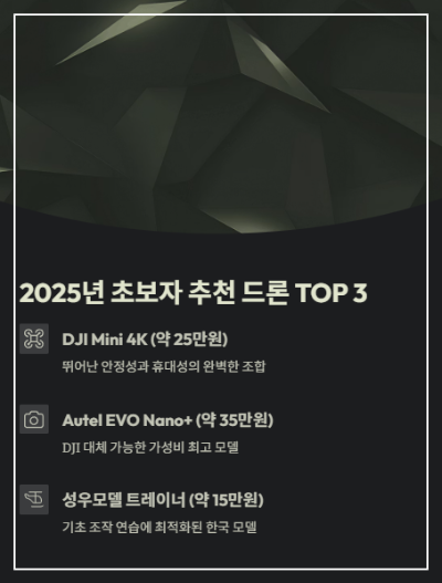 2025년 추천 초보자용 드론 베스트 5
