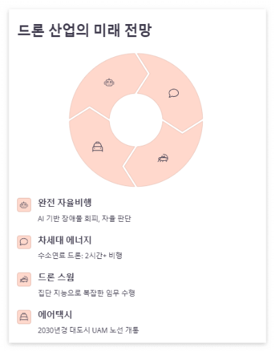 AI 발전으로 장애물 회피, 최적 경로 계산, 자율 판단이 가능한 드론이 본격적으로 등장합니다.