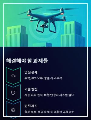고가 기체도 돌발 상황에서 추락하거나, GPS 오류 등으로 이탈할 위험이 전혀 없진 않습니다. 도시에서 드론이 대규모로 날아다닌다면 충돌 사고 우려가 커질 수도 있죠. 그래서 하늘산업이 확장되려면 자동 회피 센서, 비행 안정화 시스템을 더 발전시켜야 합니다. 실제로 몇몇 드론 업체가 AI 기반 충돌 방지 기술을 선보인 바 있는데, 아직은 연구 중이라 하네요.