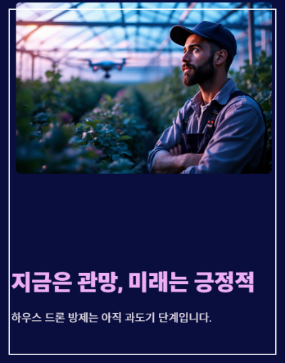 무인헬기는 하우스 내에서 조작이 매우 어렵고 충돌 위험이 커서 사실상 운용이 불가능합니다.