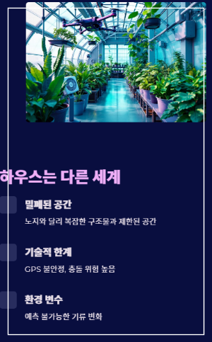 밀폐된 공간, 높은 작물, 복잡한 구조물…
