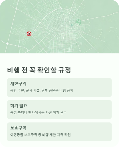 공항 주변: 무조건 제한구역으로 설정된 경우가 많아 주의해야 합니다.