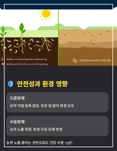 - 드론: 농약에 직접 안 닿아요!