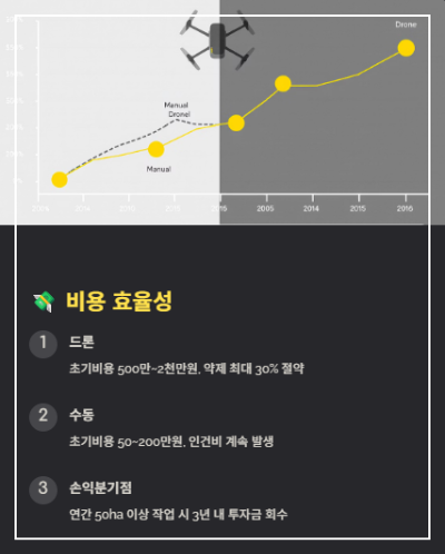 ⚖️ 손익분기점? 연간 50ha 이상 작업한다면, 3년 안에 투자금 회수 가능!