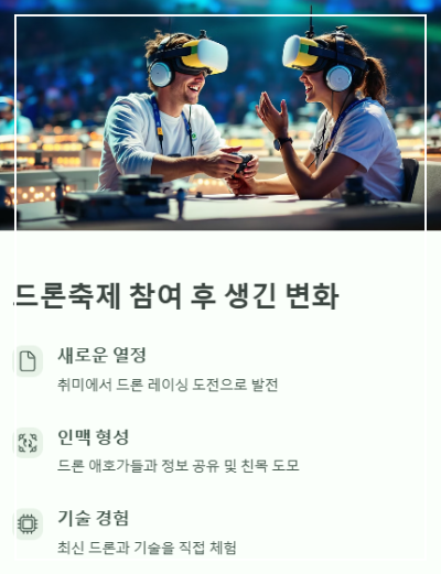 드론축제에 참여하고 난 후, 저는 드론의 매력에 더 깊이 빠졌습니다.