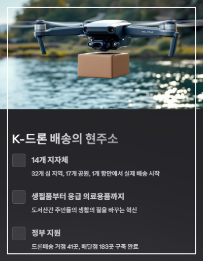 이 모든 곳에서 실제 배송이 시작된 것이죠! 생필품부터 응급 의료용품까지, 이제 하늘길로 전달되고 있습니다. 도서산간 주민들에게는 생활의 질을 바꿔주는 혁신입니다.