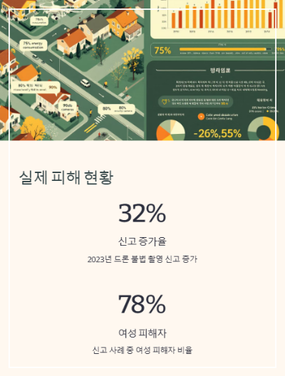이처럼 드론 몰카는 여성의 프라이버시와 안전을 직접적으로 위협하는 신종 디지털 범죄로 확산되고 있습니다.
