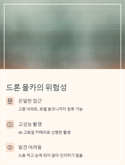 ✅ 메타 설명 드론 몰카의 위험성과 실제 피해 사례, 법적 처벌, 예방 방법까지. 드론으로부터 우리의 사생활을 지키는 실질적 대응 방안을 알아보세요.