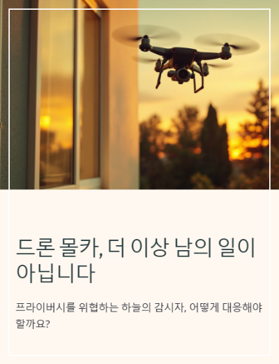 여러분이 오늘 이 글을 통해 '드론 몰카'의 위험성과 대응법을 제대로 인식하고, 일상 속에서도 지혜롭게 대처할 수 있기를 바랍니다.