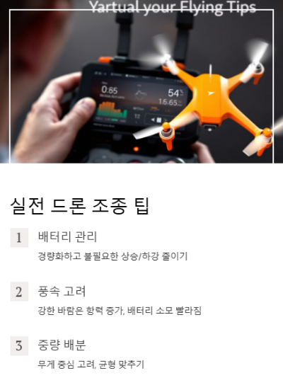 🎮 실전 드론 조종에서의 활용 팁 배터리 관리: