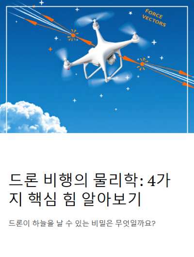 ⚖️ 4가지 힘의 균형: 안정적인 비행의 비밀 드론이 안정적으로 비행하기 위해서는 네 가지 힘이 균형을 이루어야 합니다.