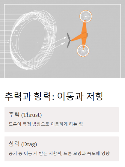 추력 (Thrust) 추력은 드론이 특정 방향으로 이동하게 하는 힘입니다.