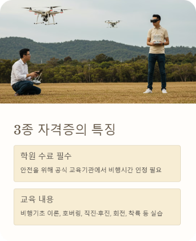 무거운 기체를 사용하는 1·2종보다는 쉽지만, 그래도 학원 수료 과정이 필수라는 점을 기억해야 합니다.