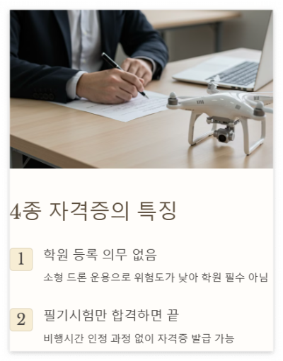4종 준비자: 학원 필수가 아니지만, 안전 조작·기체 이해·필기시험 팁 등을 배우면 시행착오가 적습니다.