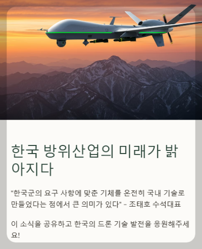 국제 정세가 복잡하게 흐르는 가운데, 이런 국산 무인기가 더욱 탄탄한 안보와 경제적 기회를 동시에 가져다주길 바라는 바람입니다.