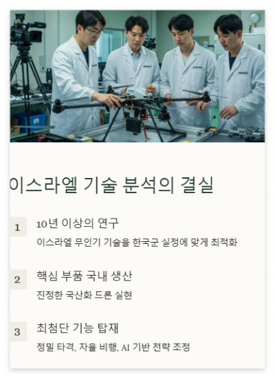 요약하자면, KOREAITC가 발표한 국산화드론은 이스라엘기술분석의 결정판이자, 한국방위산업이 또 한 번 성장할 발판이 된 사건입니다.