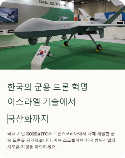 요약하자면, KOREAITC가 발표한 국산화드론은 이스라엘기술분석의 결정판이자, 한국방위산업이 또 한 번 성장할 발판이 된 사건입니다.